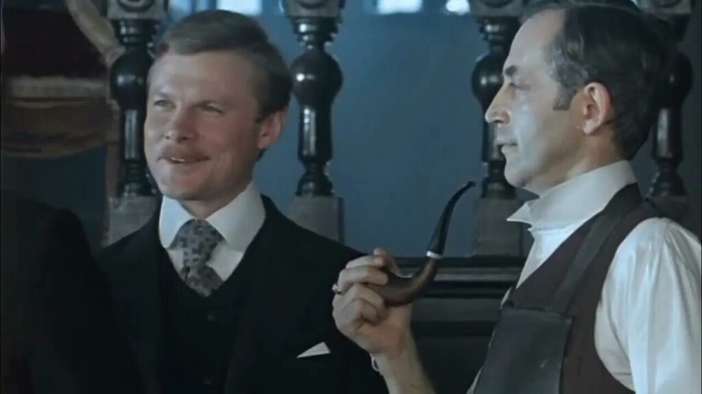 Интересно, что «Знакомство» почти лишено остросюжетной интриги в современном понимании. Главное преступление — серия загадочных смертей, связанных с ядом, — раскрывается Холмсом почти мимоходом, между делом. Суть фильма — не в «кто это сделал», а в «кто они». Перед нами — гениальное исследование дружбы. Не той, что начинается с братских объятий, а той, что вырастает из взаимного уважения, из умения терпеть странности другого и находить в них ценность. Холмс — это стихия, хаос гениальности. Ватсон — структура, порядок, человечность. Один без другого был бы неполон: Холмс — непонятым чудаком, Ватсон — заурядным врачом. Но Ватсон здесь — не просто биограф и помощник. Он — моральный термостат этой дружбы. Единственный, кто может сказать Холмсу «ты неправ» — и тот его услышит. Вместе они становятся симфонией. Каждая сцена их быта — маленький шедевр. Первый завтрак, когда Холмс определяет род занятий Ватсона по руке. Эксперимент с ядом для улиток. Прогулка в опере, где Холмс выносит пригов