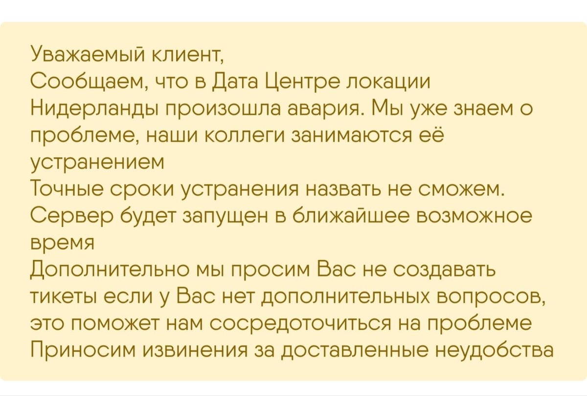 Сервер временно работает но с перебоями, могут наблюдаться перебои с работой мх!