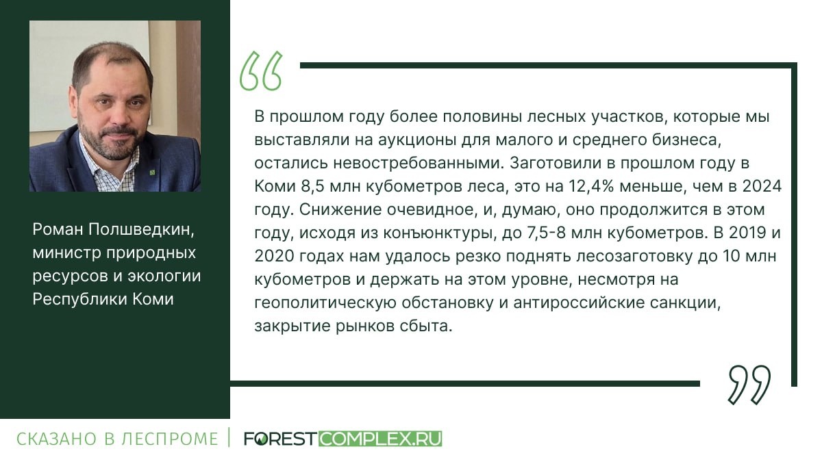 ΠΠΎ ΠΏΡΠΎΠ³Π½ΠΎΠ·Π°ΠΌ Π³Π»Π°Π²Ρ ΠΌΠΈΠ½ΠΏΡΠΈΡΠΎΠ΄Ρ ΠΠΎΠΌΠΈ Π ΠΎΠΌΠ°Π½Π° ΠΠΎΠ»ΡΠ²Π΅Π΄ΠΊΠΈΠ½Π°, ΠΊ 2026 Π³ΠΎΠ΄Ρ ΠΎΠ±ΡΡΠΌ Π»Π΅ΡΠΎΠ·Π°Π³ΠΎΡΠΎΠ²ΠΊΠΈ Π² ΡΠ΅Π³ΠΈΠΎΠ½Π΅ ΠΌΠΎΠΆΠ΅Ρ ΡΠΎΠΊΡΠ°ΡΠΈΡΡΡΡ Π½Π° 6β12%, Π΄ΠΎΡΡΠΈΠ³Π½ΡΠ² ΠΎΡΠΌΠ΅ΡΠΊΠΈ Π² 7,5β8 ΠΌΠ»Π½ ΠΊΡΠ±. ΠΌ. ΠΡΡ ΠΈΠ½ΡΠΎΡΠΌΠ°ΡΠΈΡ ΠΎΠ½ ΠΎΠ·Π²ΡΡΠΈΠ» Π² ΠΈΠ½ΡΠ΅ΡΠ²ΡΡ Π’ΠΠ‘Π‘. π³ ΠΠΈΠ½ΠΈΡΡΡ Π½Π°ΠΏΠΎΠΌΠ½ΠΈΠ», ΡΡΠΎ Π² 2019β2020 Π³ΠΎΠ΄Π°Ρ