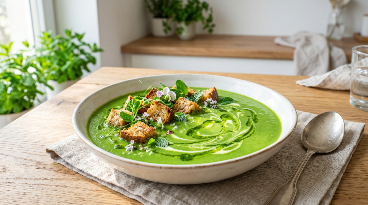 Когда за окном наконец-то тает последний снег и воздух наполняется запахом сырой земли и первой зелени, хочется чего-то лёгкого, свежего, по-настоящему весеннего. Тяжёлые зимние борщи и наваристые щи уходят на второй план, а на их место приходят блюда с ярким вкусом, насыщенным цветом и ощущением пробуждающейся природы прямо на тарелке. Именно таким блюдом для меня стал суп-пюре из молодого зелёного горошка. Он готовится настолько быстро, что вы даже не успеете заскучать у плиты, а результат каждый раз вызывает какой-то детский восторг — настолько красивым получается этот суп.