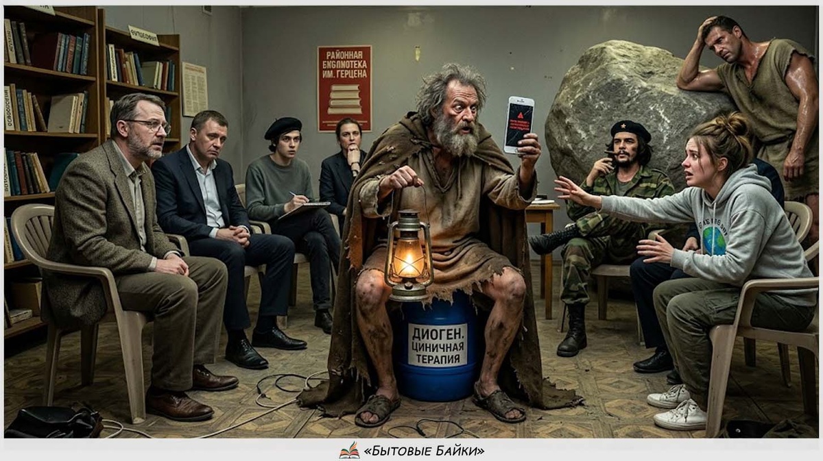 – Всё, терапия окончена! – объявил Диоген, возвращая погасший гаджет. – Идеалов нет. Смысла нет. Есть только бочка, фонарь и этот дурацкий камень. Идите в мир и помните, вы все умрете, и это единственная хорошая новость на сегодня.