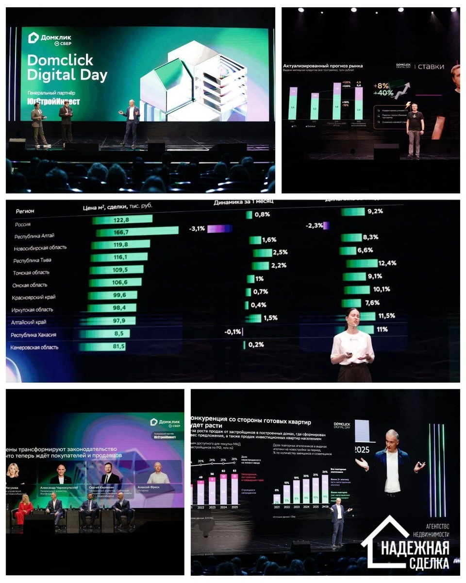 ? 🗝Делегация нашего Союза побывала на Domclick Digital Day в Новосибирске. Спикеры Сбера, Росреестра и аналитики выдали инсайты, которые перевернут 2026 год. 🧍♂️Рассказываем суть коротко и по делу. 📊 Вторичка рвет первичку Люди устали ждать и копить. Чтобы накопить на первый взнос, сейчас нужно 6,5 лет (в 2019 было 2 года). Результат: сделок на "вторичке" больше в 2-3 раза. Клиент выбирает "здесь и сейчас" 🔹 Цифры на 2026: Аналитики дали прогноз: ▪️ Рыночная ипотека вырастет в 2,2 раза. ▪️ ИЖС прибавит +25%. ▪️ К концу года ключевая ставка снизится до 13% 📊 Непроданных объектов стало почти в 2 раза больше: с 16% до 28%. На руках у застройщиков – большой объём готового жилья. Дефицита нет, сейчас рынок играет на стороне покупателя, можно выбрать реально выгодные предложения. 🔹 Кто сегодня покупает? Портрет клиента меняется: 👉 Возраст: 26-40 лет (ипотека) и 36-50 лет (кеш). 👉 Покупает не метры, а образ жизни: экология, вид из окна, безопасность. 👉 31% готов доплатить за ко