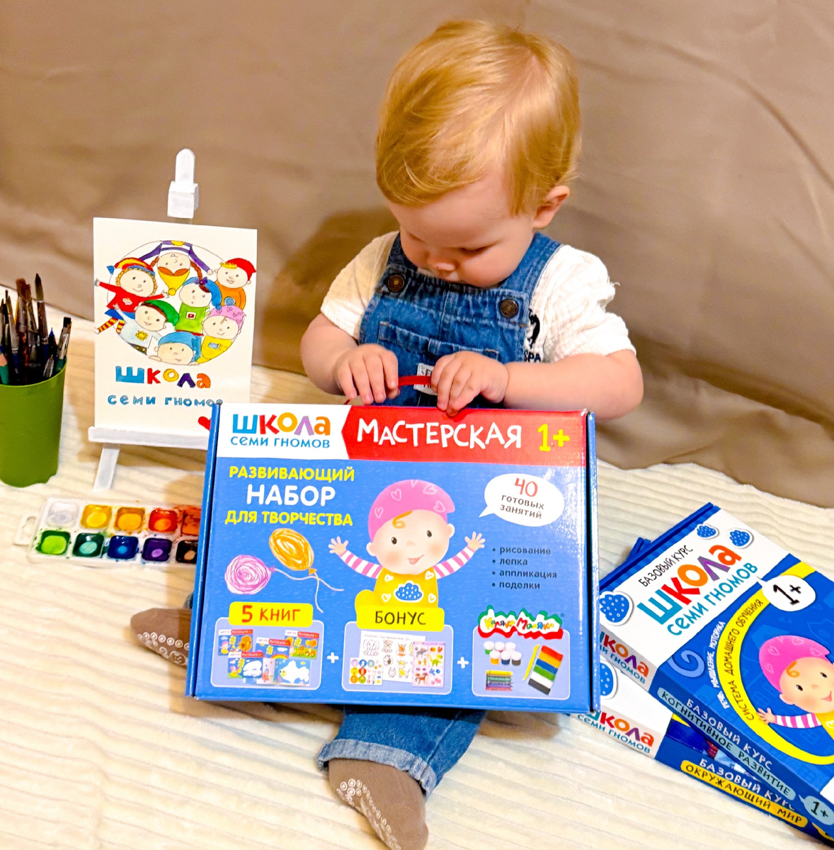 Ваши отзывы — наша любовь с первого взгляда и навсегда 🥰 Мы просто не можем держать такое счастье в себе! Сегодня делимся с вами отзывом от Дарья, которая не просто написала теплые слова, но и сделала невероятные фото. Спасибо, что вы у нас есть. «Делюсь впечатлениями (а их много) от Школы Семи Гномов, которая стала настоящим открытием для нашей семьи! Как мама, которая сама работает в сфере образования и обожает творить, я искала что-то особенное для своего малыша. И Школа Семи Гномов превзошла все ожидания! Мы выбрали Базовый курс 1+ и “Мастерскую”, и это оказалось идеальным сочетанием. Все материалы приходят в аккуратных коробочках, что очень удобно — ничего не теряется. А в “Мастерской” даже канцелярия уже в комплекте, так что никаких дополнительных забот! А еще есть поощрительные наклейки, плакаты, книжечка, где можно заполнить информацию с фото о ребенке и многое другое. Базовый курс 1+ — это не просто набор книг, а очень продуманная система развития. Целых 12! книг наполнены ув