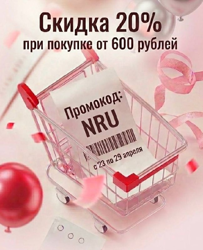 %! 💥 Повод зайти к нам в эти весенние дни: дарим скидку 20% на покупки от 600 рублей. Просто назовите секретное слово на кассе и забирайте свои покупки по отличной цене. Промокод: NRU 📍 Акция действует с 23 по 29 апреля.