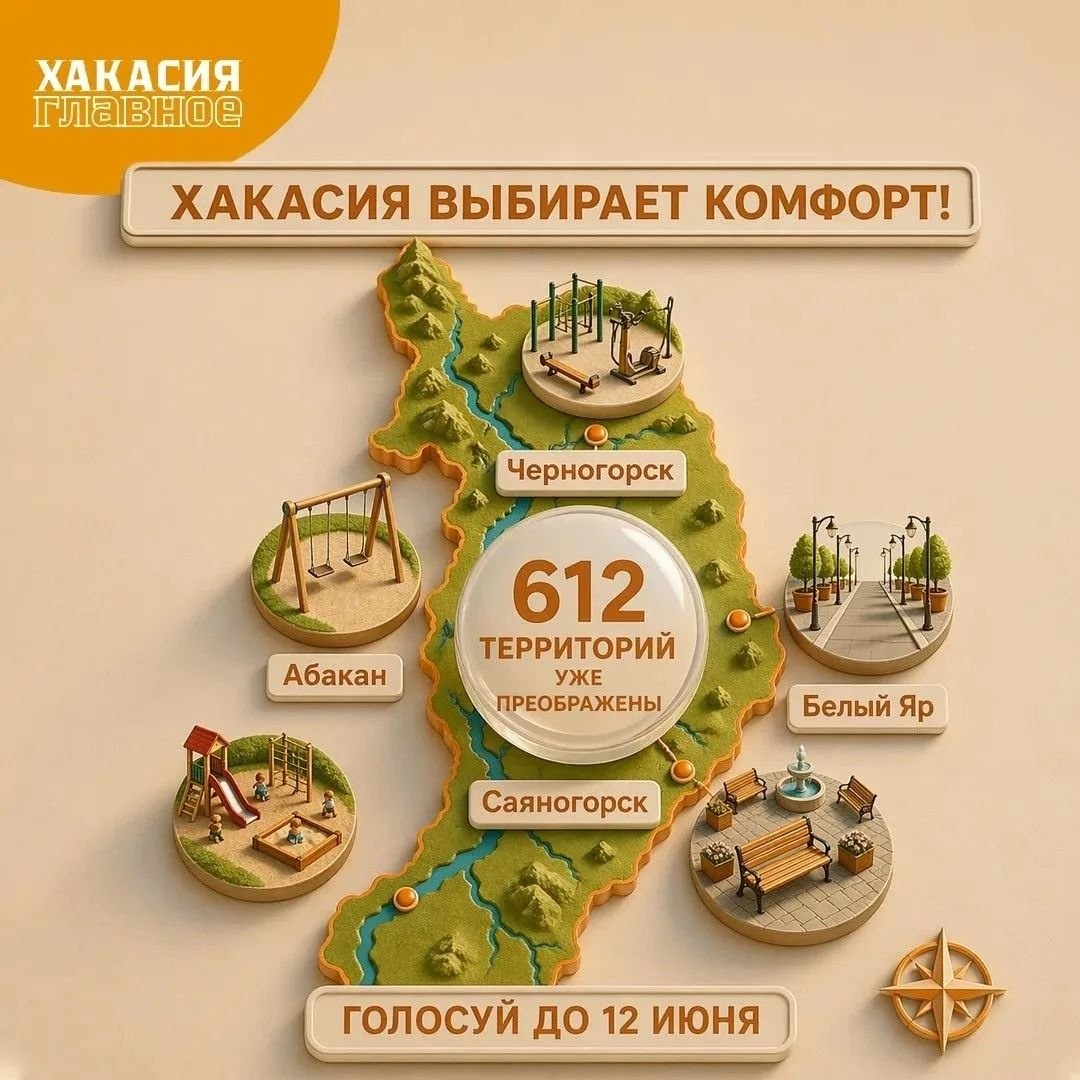 А сделать это очень просто, ведь уже идёт онлайн-голосование за объекты благоустройства следующего года. У каждого из нас есть возможность поддержать любимый сквер, парк или улицу города, и тогда они преобразятся до неузнаваемости. В этом году в Хакасии на голосование выдвинуты 51 территория в 14 муниципалитетах. 🤝 Участвуем всей республикой, поддержим красоту наших мест – от 14 лет и старше. Голоса принимают до 12 июня. Отдать свой голос можно: ✅ самостоятельно на платформе https://clck.ru/3TDaxZ ✅ через мобильное приложение «Госуслуги. Решаем вместе» ✅ с помощью волонтёров, через экосистему «Добро.РФ» 🖼 Хакасия. Главное в ТГ MAX