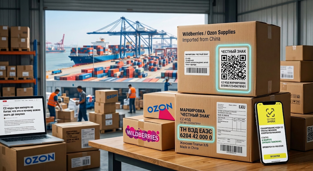 Для импортёра из Китая это означает следующее: товар должен пересечь российскую границу уже с нанесёнными CZ-кодами. Эти коды должны быть указаны в таможенной декларации. Без этого груз либо не пройдёт таможню, либо будет остановлен при первой проверке на маркетплейсе.