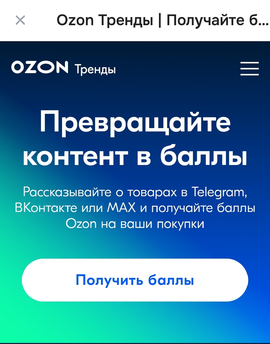 В декабре 2025 года Озон запустил сначала одну программу "Заработай вместе с Озон", если не читали или не знаете о такой акции, то 👇🏻 Озон обещал и в апреле 2026 года изменились условия. Что же изменилось: 1. Добавился каналы Мах 2. Снизился порог подписчиков с 1000+ до 10+ 3. Теперь не надо покупать товар, а просто выбрать товар сделать реферальную ссылку и вставлять его в пост или статью. 4. Упростилась пока подача заявки 5. В первой акции можно было получать фиксированное количество баллов от 500 до 3500 рублей (в зависимости от количества подписчиков) за каждый пост ( не более 3 постов в месяц), а сейчас 15% от суммы товара при покупке по реферальной ссылке. Я решила попробовать зарегистрироваться в этой программе. Для участия нужно всего 3 простых шага: 1. Добавить канал Я только вставила ссылку и нажала отправить. Хотя указано, что надо заполнить анкету, возможно, озон запомнил, анкету, которую я заполняла для программы "Заработай вместе с Озон" (посмотреть анкету, можете п