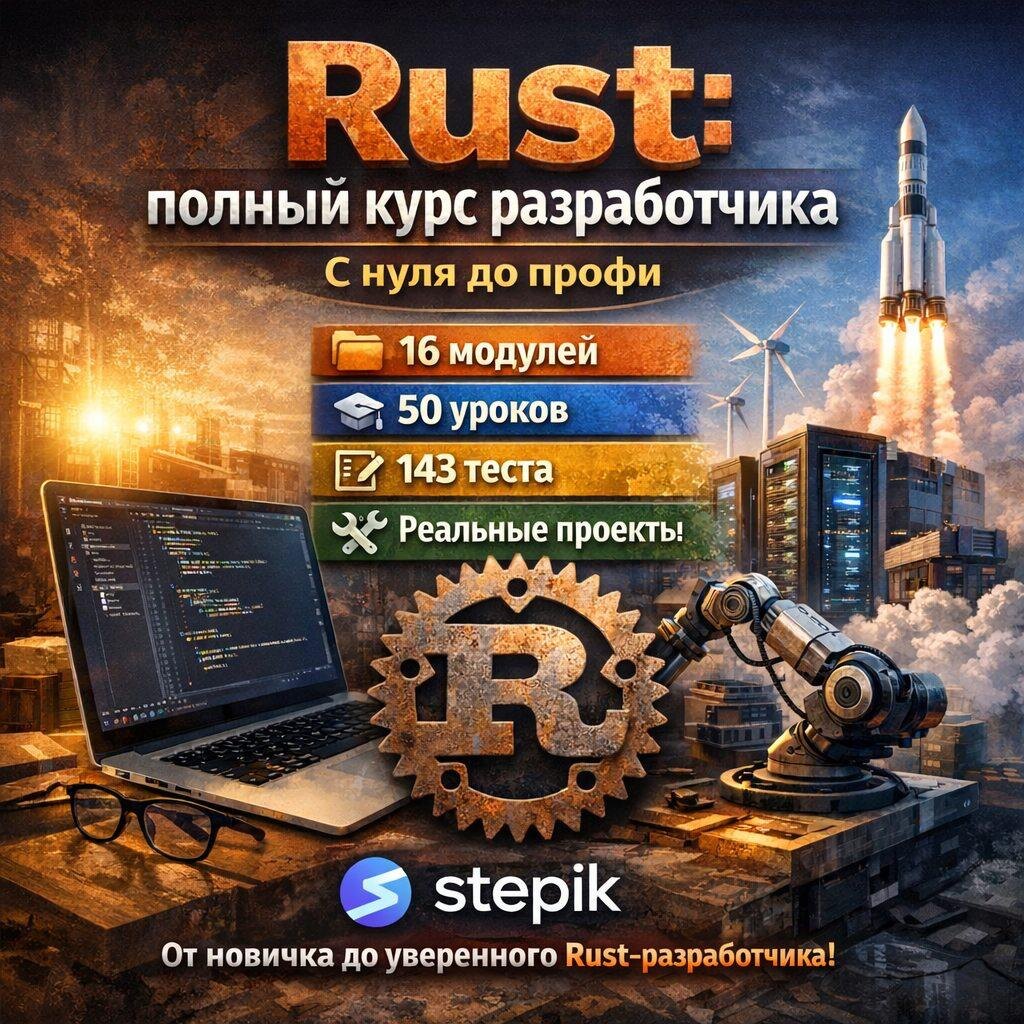 👣 На Stepik обновили курс «Rust: полный курс разработчика. С нуля до профи» Представьте: через три месяца вы открываете чужой Rust-код и читаете его как книгу. Arc<Mutex<T>> не вызывает панику. impl Future не пугает. Вы точно знаете, почему компилятор ругается и как это починить за 10 секунд. Это не фантазия. Это результат 50 уроков, в которых каждая концепция объясняется через код и закрепляется практикой. Ownership, traits, generics, async, unsafe - всё, что казалось магией, станет рабочим инструментом. А бонусом - портфолио проектов: от CLI-утилит до REST API и WebAssembly. Вы и так знаете, что Rust - ваш следующий язык. Этот курс просто сделает это реальностью. Сегодня - 55% процентов от цены, торопись: https://stepik.org/a/269250/