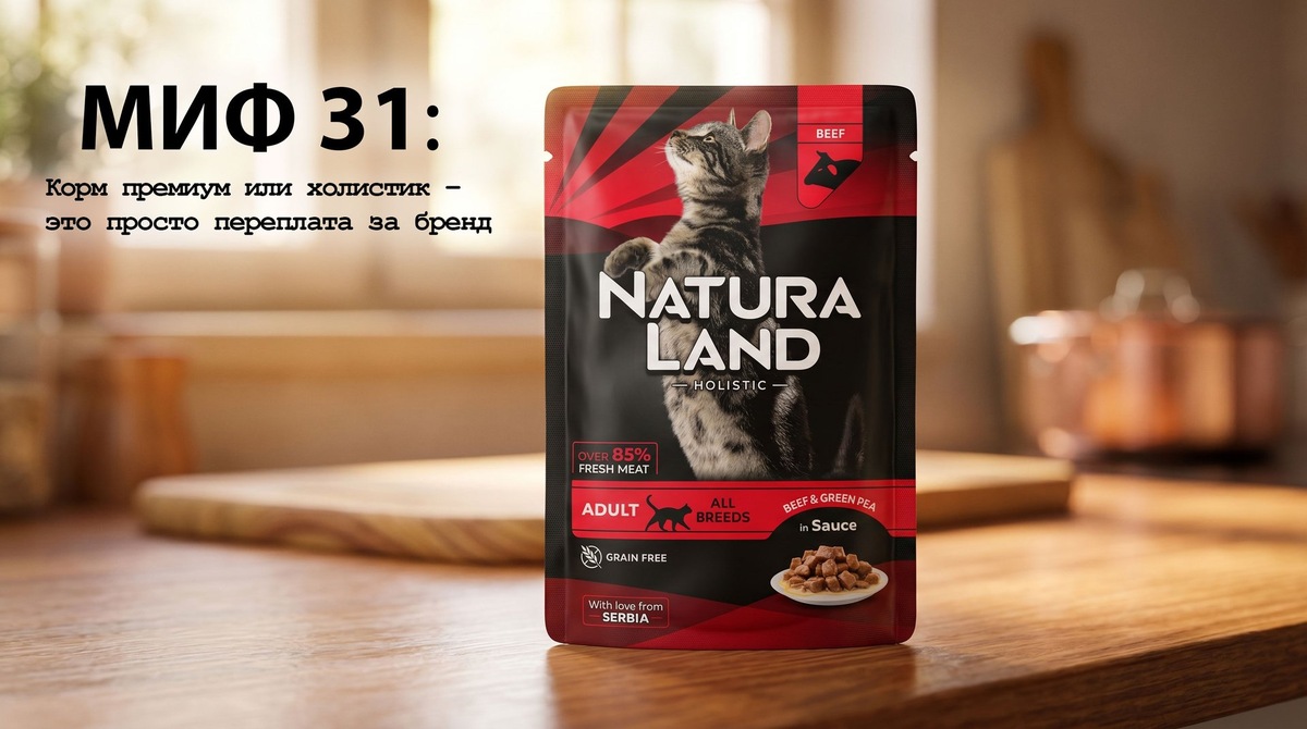 Заблуждение: Многие уверены, что все корма одинаковые, просто у некоторых яркая упаковка и высокая цена. Реальность: Разница в сырье огромна. В дешевых кормах часто используют мясокостную муку низкого качества, субпродукты и наполнители. В премиум и холистик линейках – мясо, рыба и полезные добавки, которые реально влияют на здоровье.