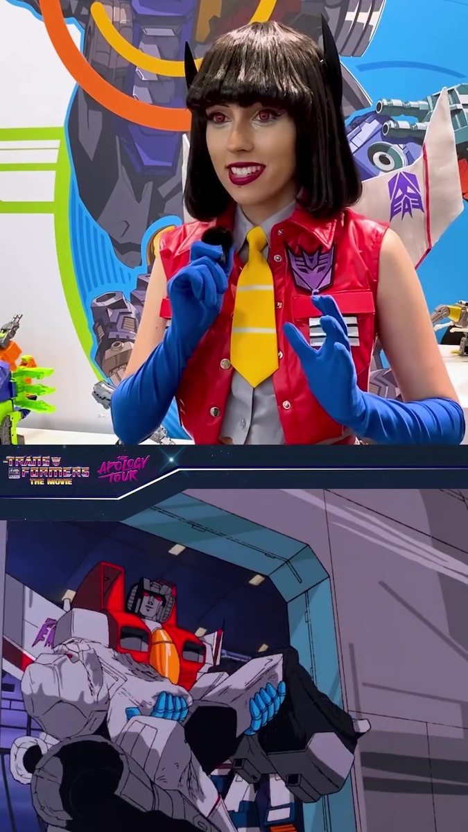 У себя в соцсетях Хасбро продолжает публиковать странные ролики, привязанные к юбилею полнометражного фильма. В новой части за 17 апреля девушка в костюме Старскрима вспоминает момент с выбрасыванием Мегатрона в космос.