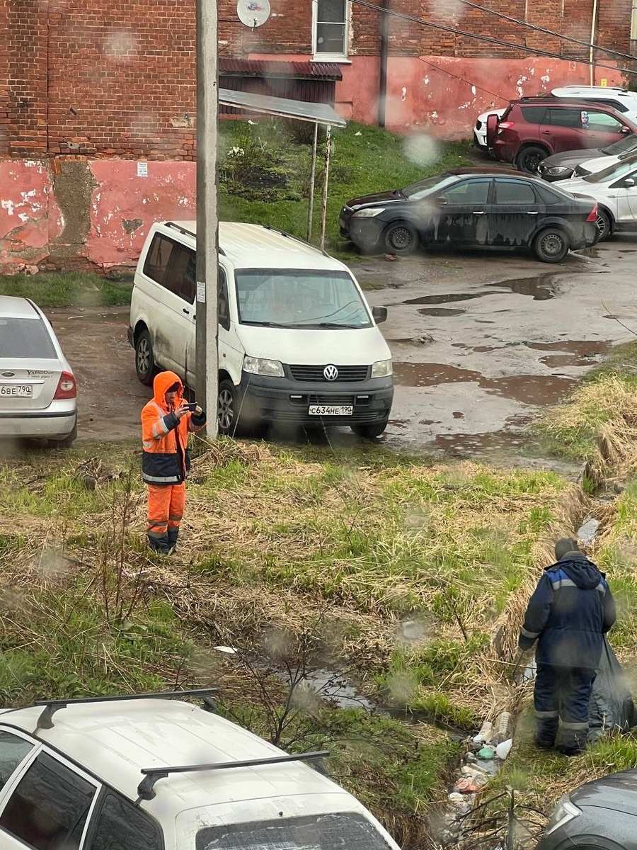 От подписчика . Один собирает, другой фоткает. Отчитались все хорошо. Но мусор остался на месте. Ручеек за банком. P.S. Зарплату тоже надо сфотографировать и вручить фотографию. #Яхрома #жкх #уборка