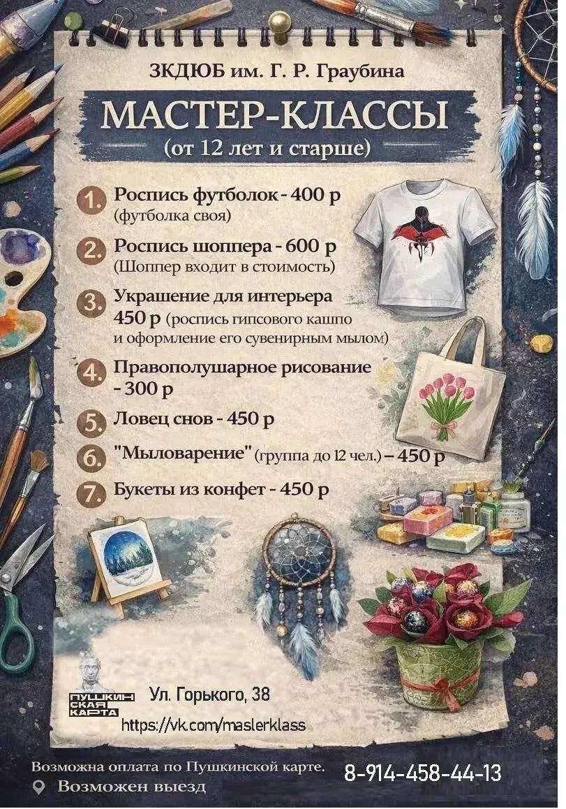 📍ул. Горького, 38. 🔑запись по телефону 89144584413 💥возможна оплата по Пушкинской карте, а также организация выездных МК Предложить публикацию:@zabkulisye_bot Забкулисье в MAX