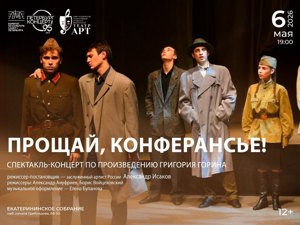 + Приглашаем вас на пронзительный спектакль-концерт театра «АРТ» по одноименной трагикомедии Григория Горина. Это глубоко психологичное повествование о людях искусства, чья жизнь разделилась на «до» и «после» в середине прошлого века. В этом спектакле вы не увидите торжественных лозунгов или великих сражений. Его герои — самые обычные люди творческих профессий: Певица и Аккомпаниатор, Танцор, Фокусник, Автор скетчей и Актер драматического театра. Под руководством своего лидера, эстрадного Конферансье, эти мирные персонажи попадают в плен, где в нечеловеческих условиях проявят свои лучшие качества. Действие охватывает последние мирные дни перед войной и ее самое начало. Зрители погрузятся в мир, где достоинство и верность призванию становятся высшим подвигом! Постановка: заслуженный артист России Александр Исаков. 6 мая | 19:00 | Екатерининское собрание