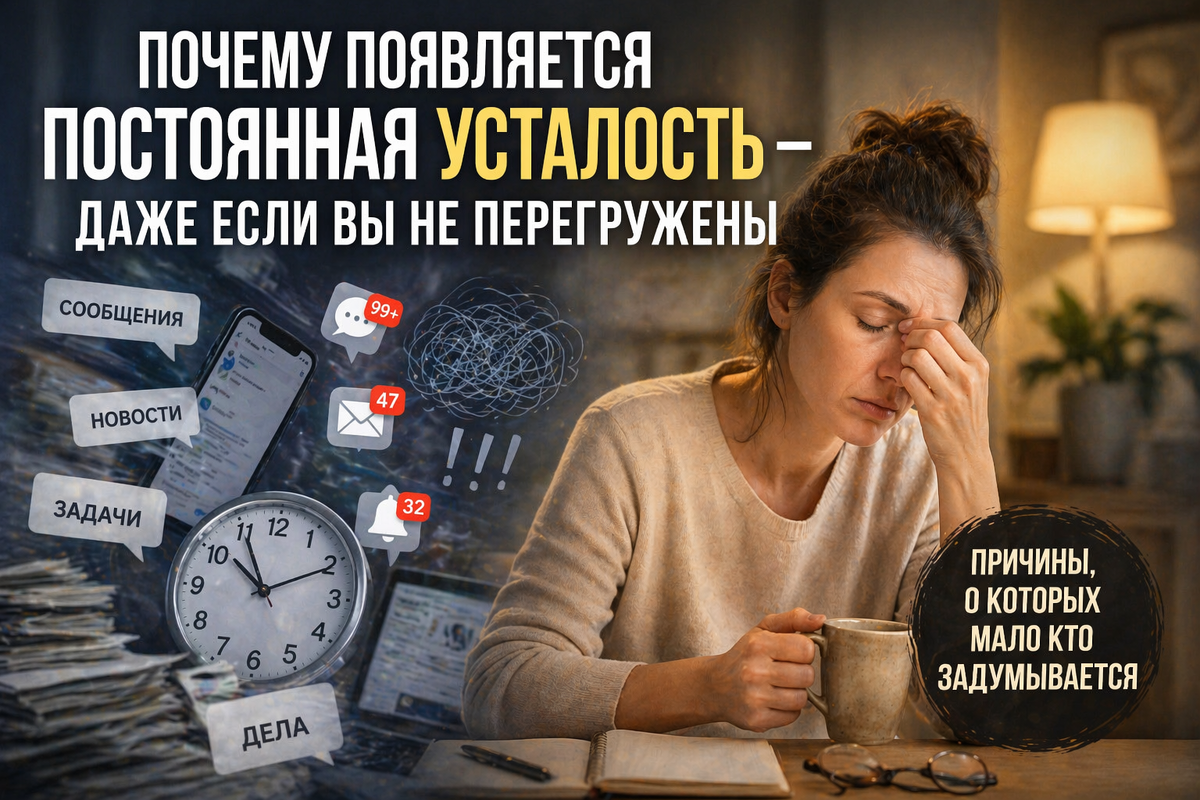 Факт, подтверждённый исследованиями в психологии и нейронауке: современная усталость всё чаще носит не физический, а когнитивный характер.