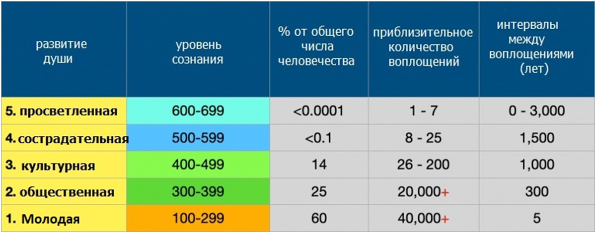 Из общего числа человеческих монад, вращающихся по Четвертой Цепи, а это приблизительно 60 миллиардов душ, ожидается, что около одной пятой достигнет уровня Асекха (45-«Я», посвящение i5) до конца Седьмого Круга. Еще одна пятая к тому времени достигнет уровня Архата (46-«Я», i4); и, наконец, следующая одна пятая будет находиться на низких стадиях Пути (на уровнях i1, i2 или i3); оставшиеся две пятых выпадут на «Великом Разделении» в середине Пятого Круга.
