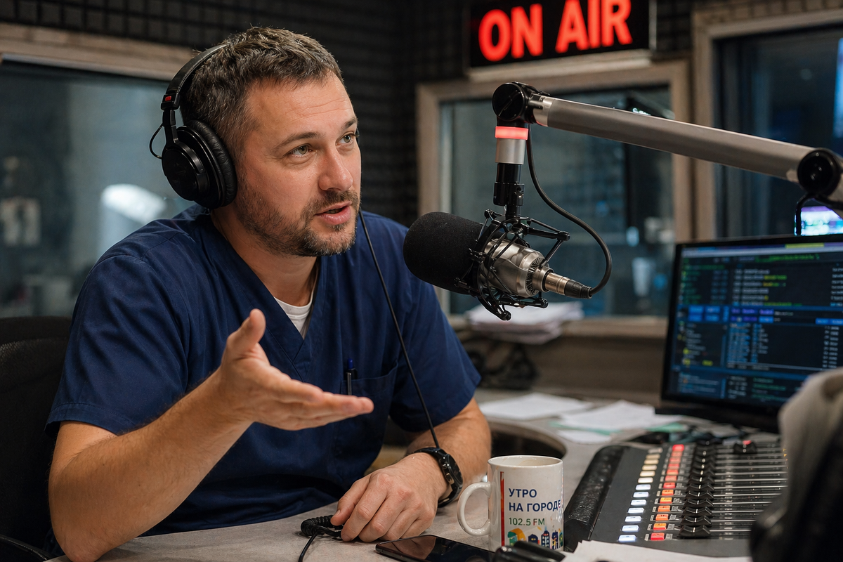 — Нам нужен живой разговор. Бодрый. Полезный. Чтобы вы простыми словами отвечали на популярные вопросы слушателей. Без перегруза. У нас утренний блок, всё должно быть легко, динамично, с пользой.