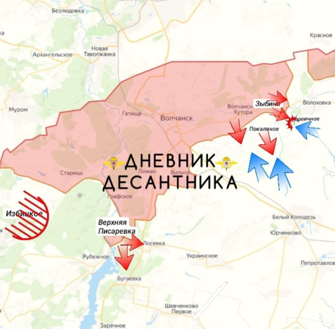 ▪️Сообщается о наступательных действиях российских войск на северо-востоке Харьковской области. Подразделения продвигаются на Волчанском участке сразу в нескольких населённых пунктах ▪️По данным источников, украинская сторона пытается перейти к оборонительной тактике вдоль линии фронта ▪️Отмечается продвижение вдоль линии Белый Колодезь — Приколотное, а также бои в районе Волчанских Хуторов и Покаляного, где фиксируются контратаки. ▪️Также сообщается о движении в направлении Лосевки и Бугаевки, расширении зоны контроля у Зыбино и зачистке лесных массивов в районе Избицкого ▪️Западнее Караичного продолжаются затяжные бои, где обе стороны пытаются закрепиться. Информация требует подтверждения Подписаться: За Брата 🇷🇺