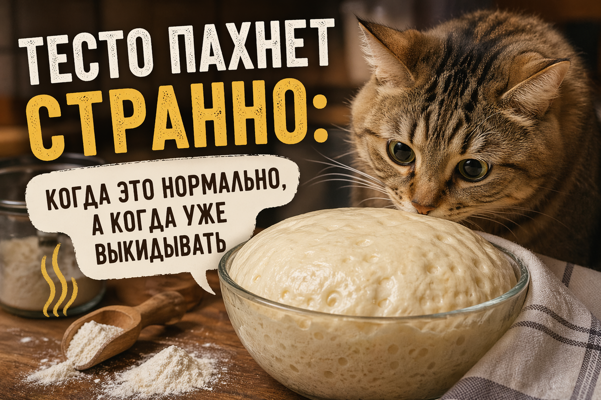 С тестом всегда одна и та же история: пока оно выглядит прилично, человеку хочется верить в лучшее. Даже если запах уже намекает, что в миске происходит не кулинария, а маленькая биологическая драма. Особенно часто это случается с дрожжевым тестом, закваской, опарой, тестом на кефире или тем, что постояло в холодильнике дольше, чем планировалось. Вроде бы не плесень. Вроде бы не яд. Но пахнет уже как-то… подозрительно.