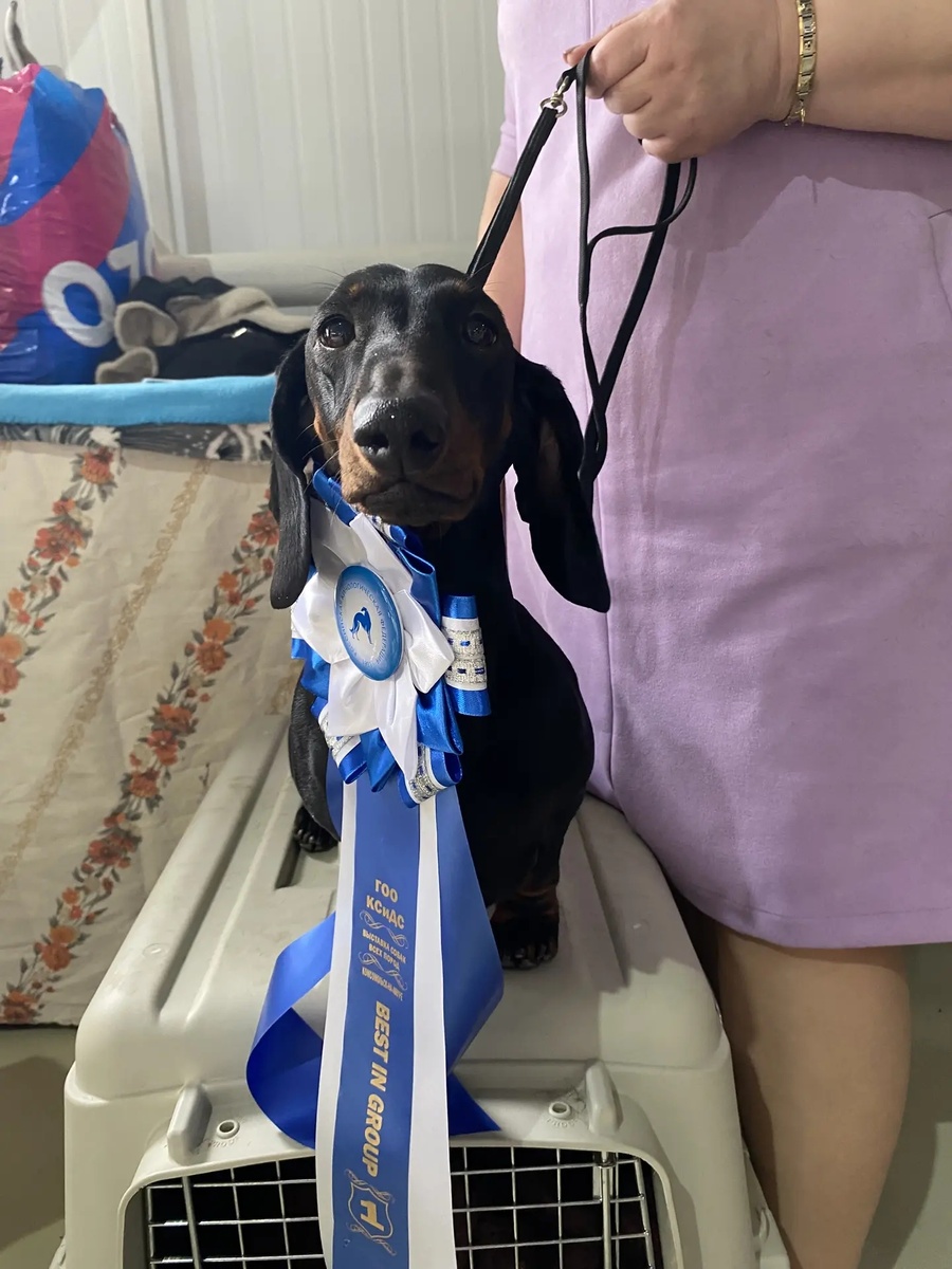 Да, а ещё и очень красивая собачка... Поэтому мама Инна решила ей отомстить... Раз Элюля испортила всей семье пасхальные выходные,то на следующие ее записали на выставку... Ну не все же ей нервы мотать... Иногда можно и не же методами.