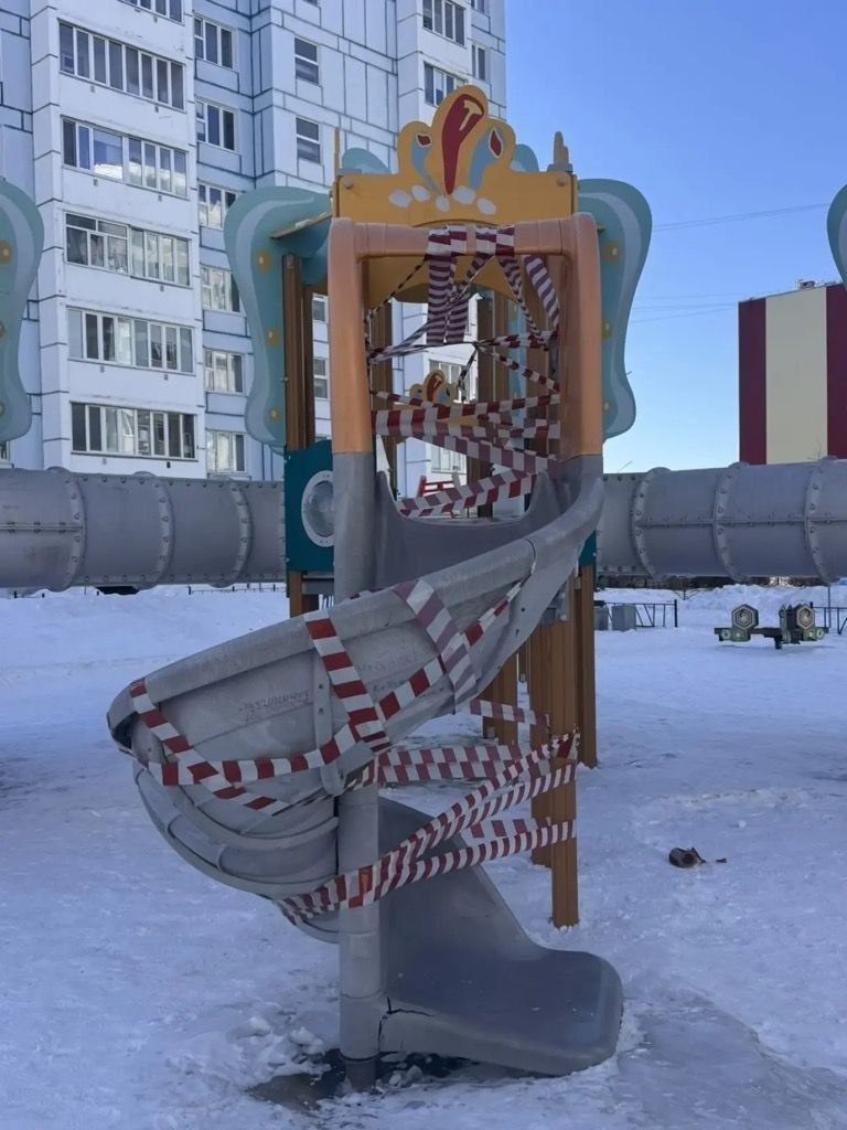 Сотрудники департамента общественной безопасности и гражданской защиты выявили неполадки на детской площадке в Восточном микрорайоне. Информация о технических повреждениях передана обслуживающей организации — «УГСК». Горка обмотана сигнальной лентой, чтобы дети не могли ею пользоваться. В ближайшее время она будет демонтирована, а на её место установят новую, безопасную конструкцию. Надёжность каждого элемента, прочность материалов, отсутствие острых углов и регулярный уход — всё это важно. Если вы обнаружили повреждение конструкций, иные проблемы, угрожающие безопасности, обращайтесь в чат ДОБиГЗ, а также подписывайтесь на их канал в МАХ. ❄️ НУР. Официально | Подписаться в MAX