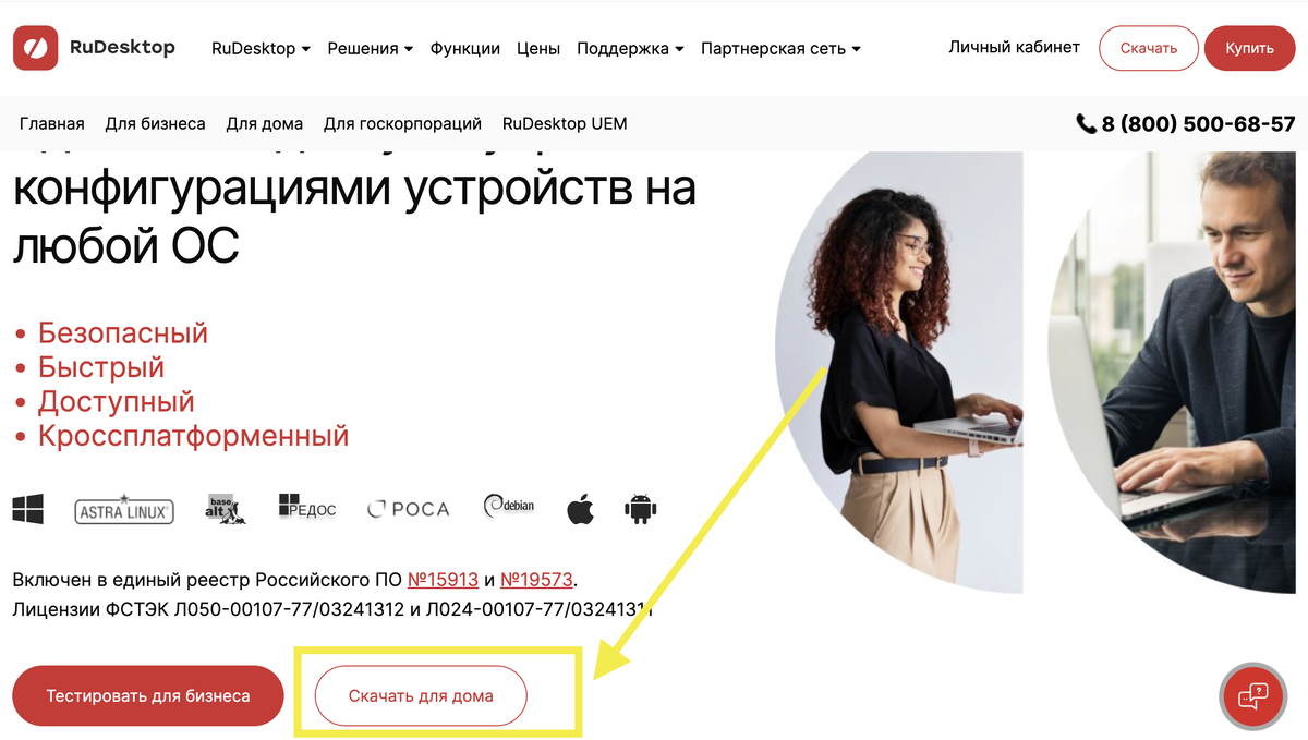 Один из самых удобных вариантов для этого — RuDesktop. Это программа для удалённого доступа: специалист видит ваш экран и работает в вашем кабинете только после вашего подтверждения. Официально программа доступна на сайте разработчика, есть версии для разных операционных систем, а базовая установка описана в их документации.
