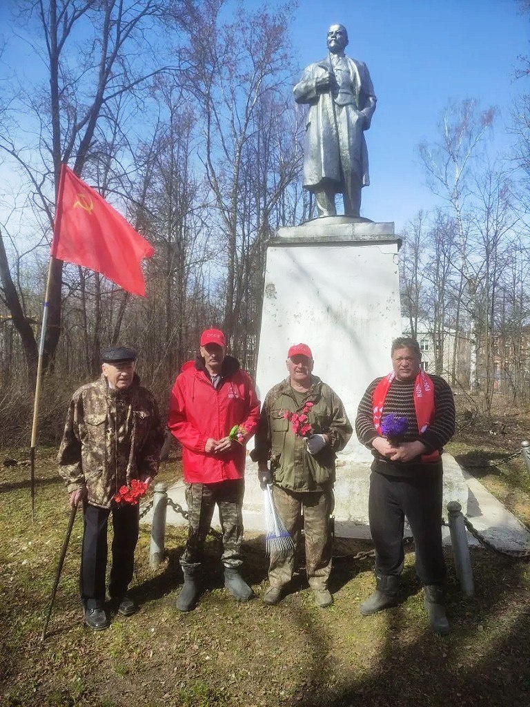 И. ЛЕНИНА Поселок Каменка: в сквере у памятника вождю мирового пролетариата коммунисты провели субботник посвящённый дню рождения Владимира Ильича Ленина. Коммунист, ветеран партии В.Г. Смирнов рассказал о жизни и деятельности В.И. Ленина, оказавшего значительное влияние на историю страны. Отмечена роль идей Ленина в становлении трудового энтузиазма советских людей и формировании социалистического общества. Собравшиеся возложили цветы к памятнику выдающемуся революционному деятелю. Также коммунисты Вичугского райкома КПРФ выразили уважение к историческому наследию великой эпохи и благодарность поколению основателей Советского Союза в п.г.т. Старая Вичуга, Новописцово и в городе Калуга. Вичугский райком КПРФ Примечание: В поселке Новописцово ведется реставрация постамента памятника В.И. Ленину.