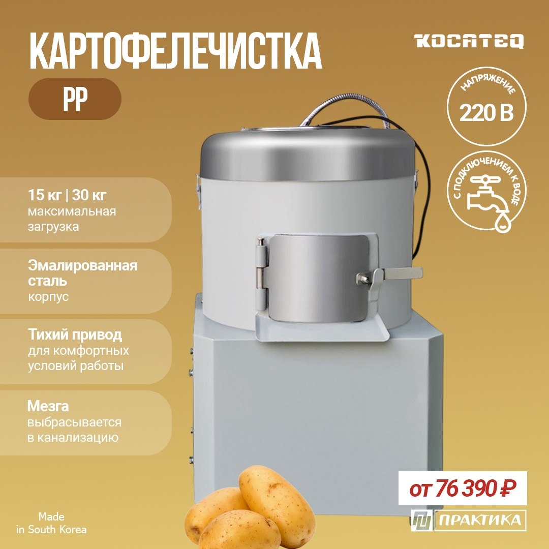 ?: ◽️Картофелечистка позволяет сэкономить время и усилия вашего персонала, особенно при обработке больших объемов. ◽️Обеспечивает более эффективную и равномерную очистку, чем ручная работа. Позволяет значительно снизить % отходов. ◽️Снижается риск травм и повреждений, связанных с ручной очисткой. Рассказываем о принципе работы картофелечискти на примере аппарата KOCATEQ PP: ◽️Корнеплод очищается за счет принудительного контакта картофеля с абразивной поверхностью стенок картофелечистки и вращающегося диска, расположенного в основании емкости. ◽️В процессе очистки продукт постоянно омывается проточной водой, подаваемой через душирующее устройство, расположенное на гибком металлическом шланге. ◽️Образующаяся при очистки мезга выбрасывается из машины в канализацию. ◽️Как правило, процесс занимает не более 1-2 минут. 🔘 от 76 390 ₽* *Цена актуальна на момент опубликования https://pectopah.ru/catalog/obrabotka_ovoshchey_i_fruktov/mashiny_ochistki_korneplodov/filter/in_stock-is-y/apply