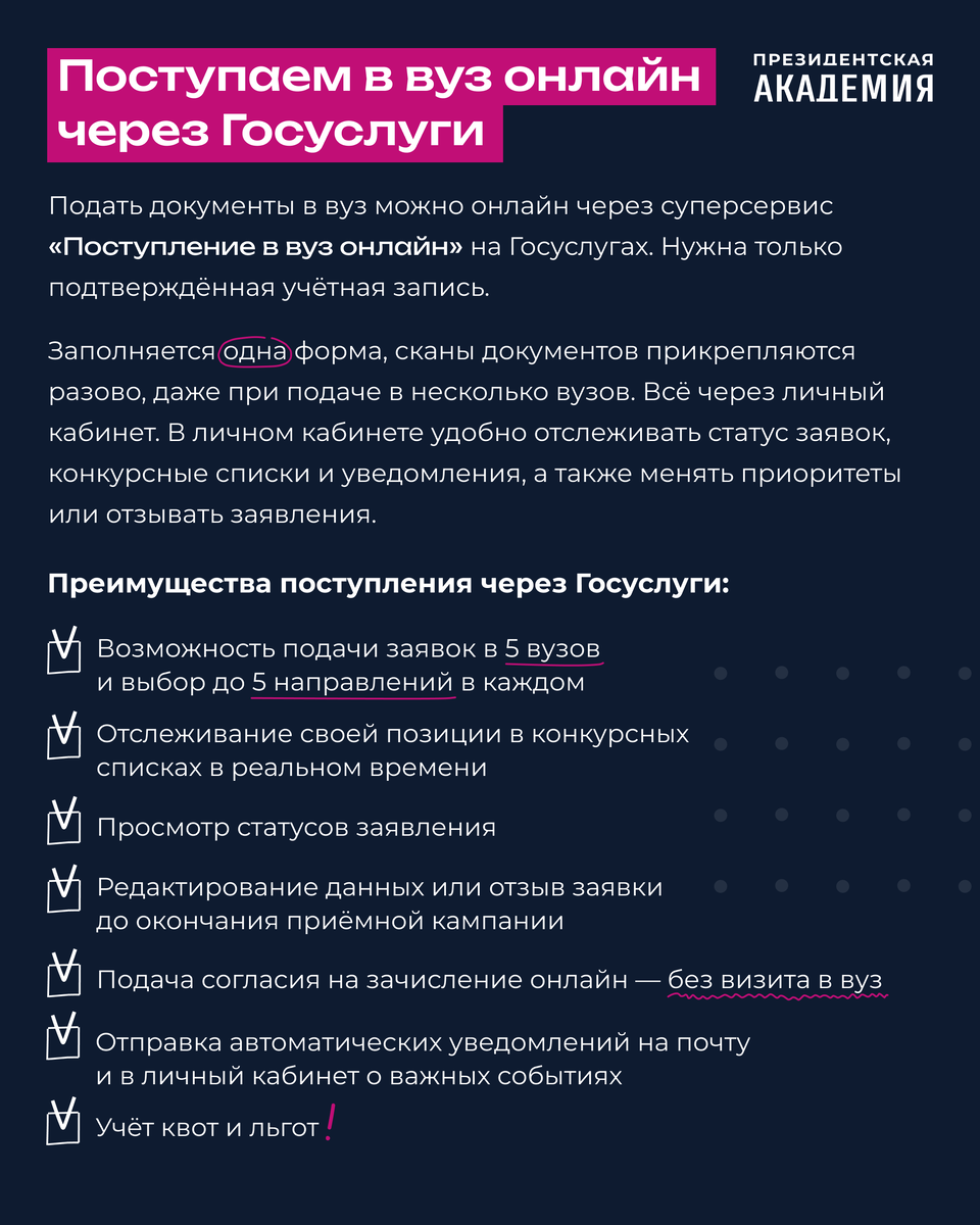 Про суперсервис «Поступление в вуз онлайн», необходимые документы и преимущества Госуслуг — читайте в карточках и на сайте.