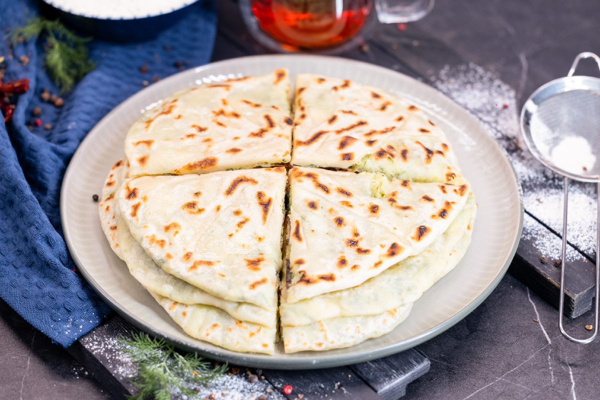 Когда закончили экскурсию по кавказским лепешкам, самое время перейти от теории к практике. Сегодня готовим хычины с картошкой и сыром – простое, но очень честное блюдо, где всё решают тесто, начинка и немного терпения. Хычины – это тонкие лепешки с щедрой начинкой, которые жарятся на сухой сковороде и сразу смазываются сливочным маслом. Снаружи – легкая золотистая корочка, внутри – горячая, тянущаяся сырно-картофельная начинка с укропом. Никаких сложных техник, только базовые продукты и правильные пропорции. • Мука пшеничная – 300 г