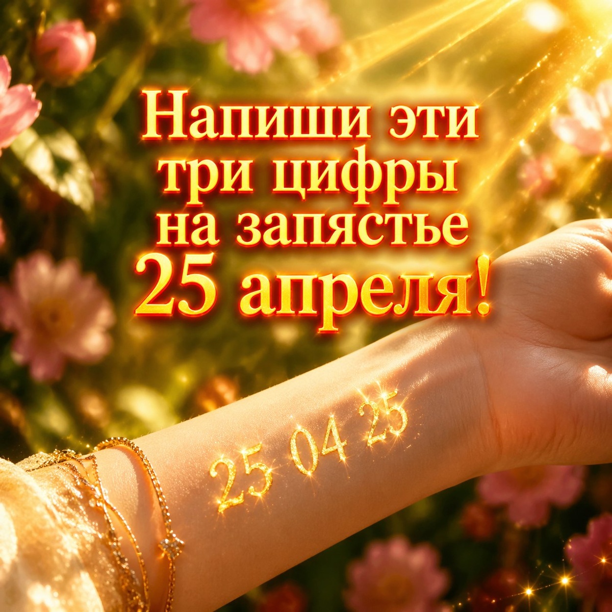 Ваш личный числовой талисман, портальный код на 25 апреля 2026 года — 738. Семерка (мистика, глубина, суть дня), Тройка (созидание, матрица даты), Восьмерка (бесконечность, проявление в материальном мире, число года без нулей). Этот код — 738 — работает как вибрационный якорь. Утром, после пробуждения, нарисуйте эти три цифры красной или синей ручкой на внутренней стороне левого запястья. Левая сторона — принимающая. Этот код будет выравнивать ваше поле в течение дня, отсекая негативные программы и притягивая нужные линии вероятностей. Вечером просто смойте его водой с благодарностью. Также вы можете написать этот код на листке бумаги и положить в кошелек или под чехол телефона, если вам предстоят важные разговоры или вы ждете поступления ресурсов.