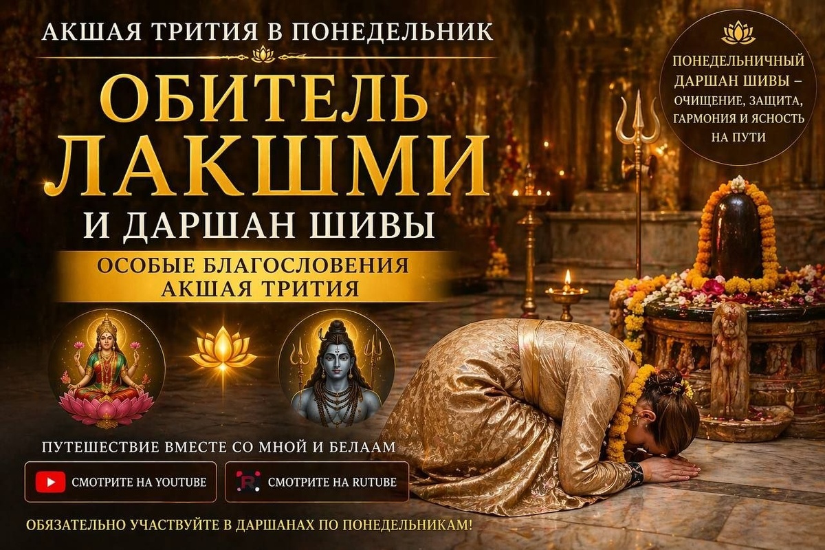 🔱 ✨ Мои дорогие… Я приглашаю вас отправиться вместе со мной и Белаам в сакральное путешествие — в обитель Лакшми 🌸 и прикоснуться к Даршанам Божеств… И, конечно же, получить благословения Шивы 🔱 📆В этом году Акшая Тритья пришлась на понедельник — а это значит, что энергии усилились многократно… И мы отправились туда не просто так… а чтобы получить: ✨ понедельничный Даршан Шивы🔱 ✨ и дополнительные благословения этого невероятного дня. Это не просто поездка… это соприкосновение с пространством, где желания становятся реальностью🙏, а молитвы — услышанными 💫 🎥 Приглашаю вас прожить это вместе со мной: 😉 YouTube: https://youtu.be/gf_OkgGnkg0?si=c49hWH3S4ea4STQj 🥰 RuTube: https://rutube.ru/video/87e48143b10a5bac356938e349aa85c3/ 🔱 И мои дорогие, обязательно участвуйте в понедельничных Даршанах Шивы. 🌕 Понедельник — это день Луны 🌙 день ума, эмоций и внутреннего состояния. И именно через Шиву происходит глубокая трансформация: ✅ очищение от кармических накоплений ✅ снят