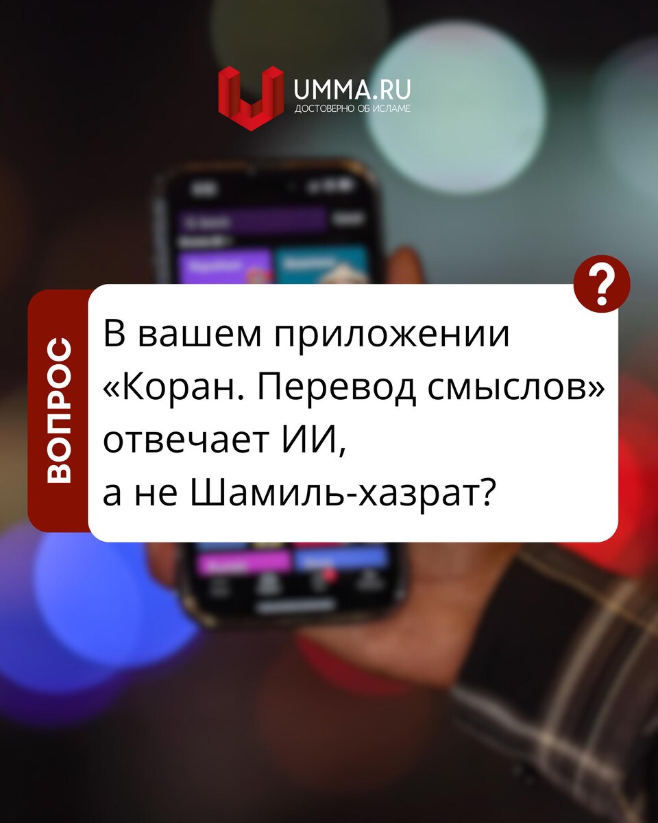 Но на основе знаний Шамиля-хазрата. Почему мы запустили ИИИ? Потому что вопросов приходит огромное количество. При этом на большинство из них ответы уже были даны неоднократно: в книгах, на сайте, в статьях, в лекциях. Но каждый человек хочет получить ответ именно на свой вопрос и в своей ситуации. Многие не хотят публичности и просят индивидуально, конфиденциально... Как сейчас обрабатываются вопросы, которые приходят на почту? Чаще всего человеку просто отправляют ссылки на материалы, чтобы он сам изучил тему. Иногда предлагаем задать вопрос в чате (возможно, Ш. А. увидит его и ответит). И даже в таком случае человек может ждать ответа (точнее ссылки) неделями или месяцами. В итоге человек расстраивается, начинает искать ответ в интернете. А там, к сожалению, можно встретить информацию, которая вводит в заблуждение, а в худшем случае может увести совсем не в том направлении. Именно поэтому мы и создали ИИИ – исламский искусственный интеллект. Его задача – давать ответ быстро (се