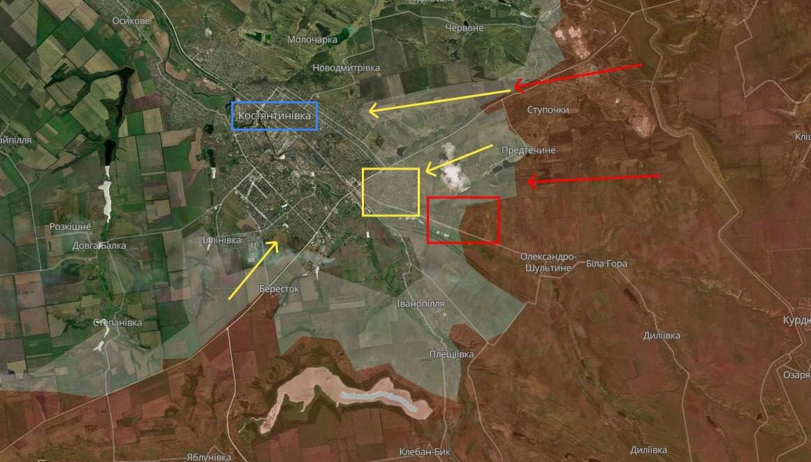 дронов. По словам противника, несмотря на активное применение дронов ВСУ, штурмовики ВС РФ закрепляются на окраинах Константиновки и используют плотную городскую застройку чтобы прятаться от украинских беспилотников, сосредотачивать силы и продвигаться вперед. Кроме того, ВКС России активно бомбят город. Судя по описанию, текущая ситуация в Константиновке начинает напоминать ситуацию в Покровске. Его штурм проходил по аналогичной схеме – штурмовики с тяжелыми потерями накапливались в городской застройке, а затем под прикрытием ударов авиации просачивались вперед, пользуясь брешами в обороне ВСУ из-за недостатка пехоты на передовой. Военный Осведомитель