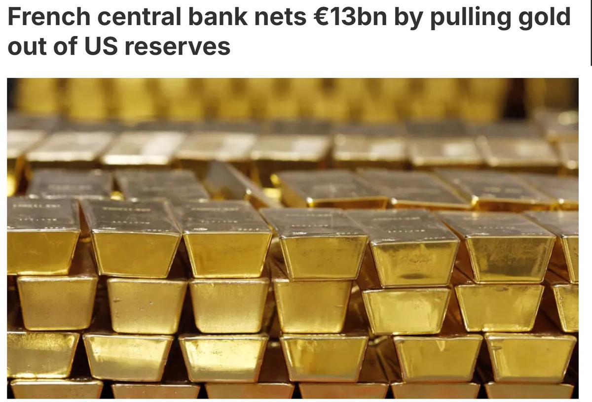 ⚡️ Золото, как оказалось, не только блестит, но и приносит неплохие деньги! Франция, например, вывела всё своё золото из США и заработала на