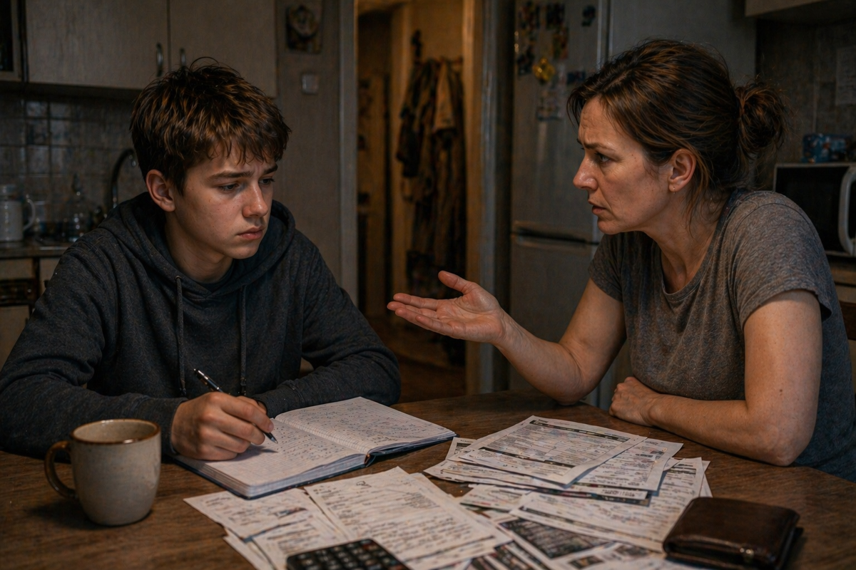 — Работать пойдёшь, иначе мы лишимся квартиры. Голос матери прозвучал резко, без привычных мягких интонаций. Саша поднял глаза от тетради. Он не сразу понял смысл сказанного. — В смысле… работать? — переспросил он. Ему было пятнадцать. В его мире «работа» существовала где-то далеко — у взрослых, за пределами школы, контрольных и футбола во дворе. — В прямом, — ответила мать, не глядя на него. — Нам нечем платить за квартиру. Долги растут. Если ничего не изменится — нас выселят. Саша почувствовал, как внутри стало холодно. Выселят. Слово прозвучало чуждо, но пугающе конкретно. — А… ты? — тихо спросил он. Мать резко повернулась. В её глазах было раздражение и усталость. — А я, по-твоему, ничего не делаю? Я работаю на двух работах! Но этого не хватает! Он замолчал. Он не хотел её обидеть. Просто пытался понять. — Мне нужно, чтобы ты помог, — добавила она уже тише. Саша опустил взгляд на тетрадь. Буквы расплывались. Ещё вчера он переживал из-за контрольной по математике. Сегодня — из-за то