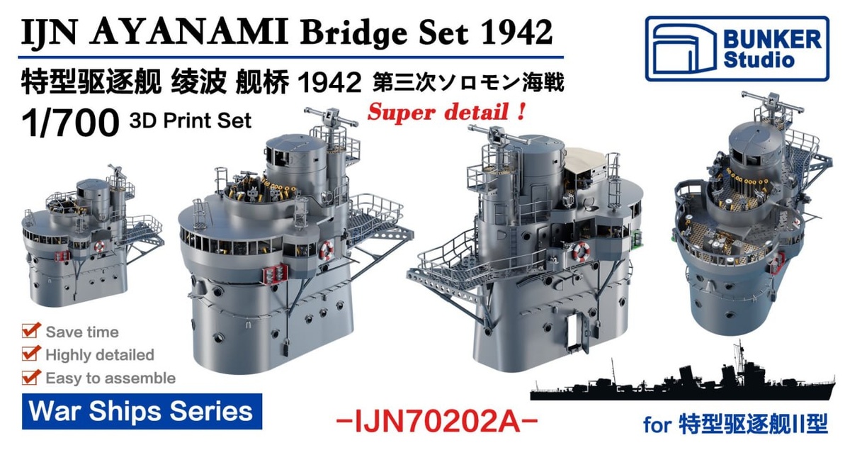 Bunker Studio анонсировали дополнения для моделей эсминцев AYANAMI в 1/350 и 1/700 масштабах.