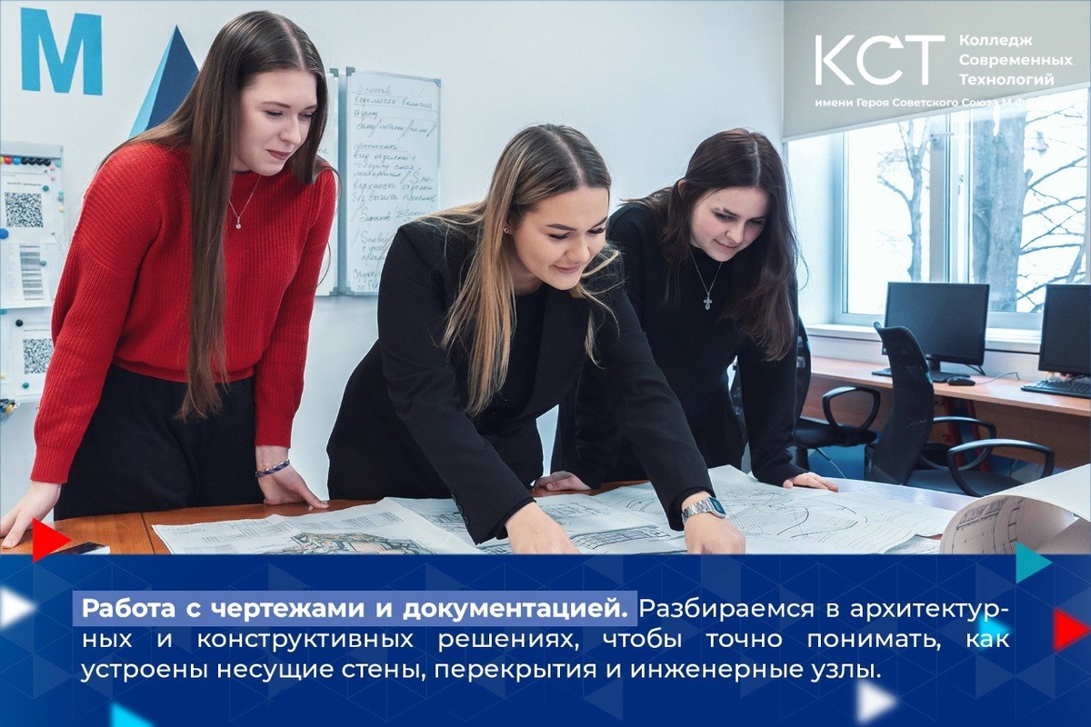 🏗🏙️ На этой неделе в центре внимания — одна из самых фундаментальных специальностей нашего колледжа: «Строительство и эксплуатация зданий и сооружений». Чем занимаются ребята? Студенты учатся не просто разбираться в чертежах, а полностью сопровождать жизнь здания: от первого колышка в фундаменте до последующего обслуживания после завершения стройки. В карточках показали, как проходят будни наших студентов на практических занятиях 🔼 А помимо диплома, выпускники получают мощный набор профессиональных компетенций: ⚫️свидетельство о профессии «Маляр строительный» 2 разряда; ⚫️свидетельство о профессии «Штукатур» 3 разряда. #ГБПОУКСТ #КолледжиМосквы #ДОНМ