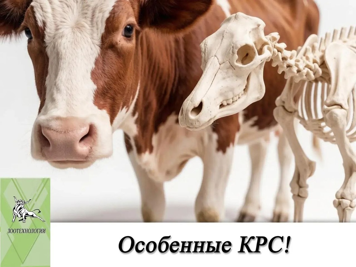 Особенные КРС! 🐮 Ряд особенностей костей крупного рогатого скота (КРС), которые редко или вовсе не встречаются у других животных: 🌟 Лобные кости с роговидными отростками: У КРС лобные кости сильно удлинены сзади (до шеи) и имеют роговидные отростки, направленные в стороны и вперёд. 🌟 Раздвоенные носовые кости: У коровы носовые кости раздвоены — это адаптация к строению морды и отсутствию верхних резцов. 🌟 Беззубый край верхней челюсти: На теле верхней челюсти у КРС отсутствует лунка для резцов (передний край резцовой кости называется беззубым). Это отличает коров от многих других млекопитающих (например, у лошадей есть резцовый канал, у свиней — лунки для резцов). 🌟 Сросшиеся крестцовые позвонки (крестовая кость): У коровы 5 крестцовых позвонков срастаются в единую крестцовую кость с гребнем из остистых отростков. У большинства других животных крестцовые позвонки менее жёстко соединены. 🌟 Сросшиеся пястные/плюсневые кости: У КРС третья и четвёртая пястные и плюсневые кости