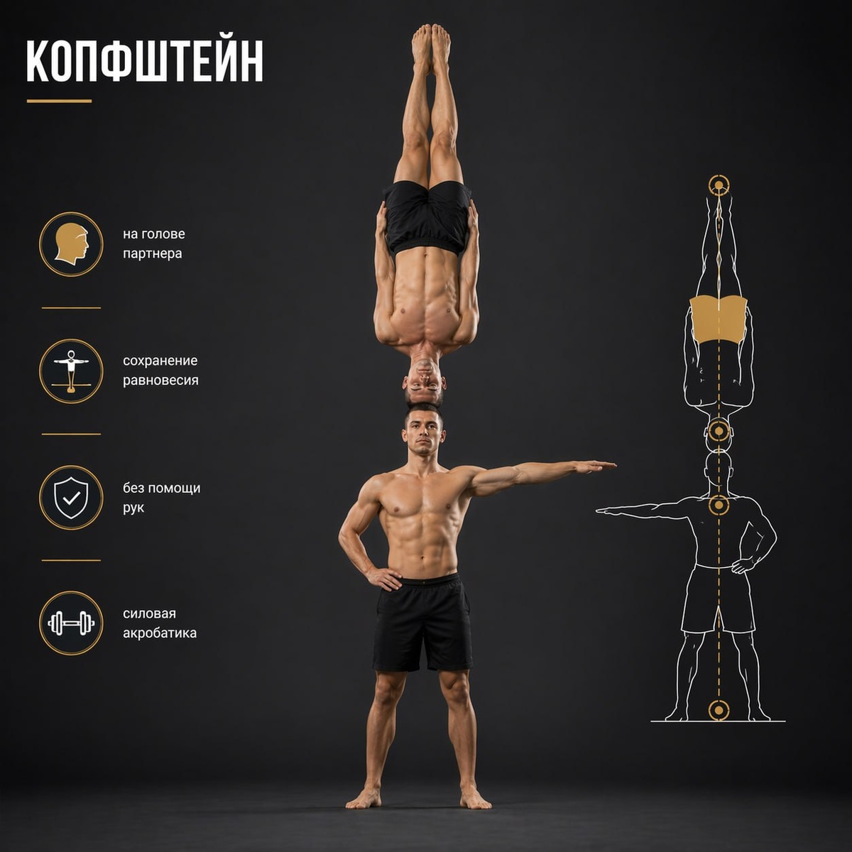 Знакомьтесь - Копфштейн! Копфштейн (от нем. Kopf — «голова» и stehen — «стоять») — акробатический трюк, стойка на голове. Копфштейн — это не просто стойка на голове, а очень честный индикатор подготовки спортсмена. В нём сразу видно: 🔹 ось тела 🔹 контроль корпуса 🔹 силу плечевого пояса и центра 🔹 умение держать фиксацию без лишних коррекций Хороший копфштейн — это всегда про контроль, а не про эффектность. Что отличает качественное исполнение? ✅ чистая линия ✅ активная опора, а не перегрузка шеи ✅ собранный корпус ✅ спокойная и уверенная фиксация Почему тренеры ценят этот элемент? Потому что он быстро выявляет слабые места: баланс, устойчивость, выравнивание, силовую готовность. Слово Акробата Прислать свое видео