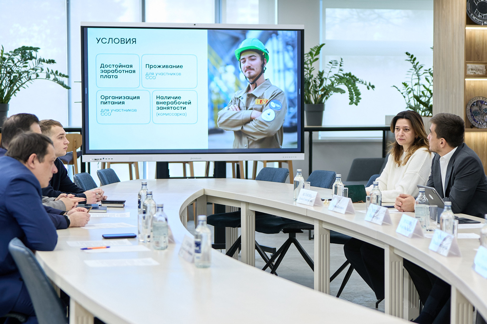 В рабочем пространстве Национального исследовательского Московского государственного строительного университета (НИУ МГСУ) состоялась встреча представителей студенческих отрядов с руководством университета, государственным заказчиком и инвестором, осуществляющим строительство – девелоперской компанией Capital Group. Цель мероприятия – интеграция студенческой молодёжи в реализацию масштабных инфраструктурных инициатив и обсуждение организации трудового семестра для будущих инженеров и специалистов строительной отрасли. По итогам встречи принято решение о создании 50 рабочих мест для обучающихся НИУ МГСУ на объектах кампуса мирового уровня, что позволит студентам внести вклад в формирование образовательной среды, а также будет способствовать развитию профессиональных компетенций будущих специалистов строительной отрасли страны. Во встрече приняли участие депутат Государственной Думы Федерального собрания Российской Федерации, председатель Правления МООО «РСО» Юлия Дрожжина, проректоры НИ