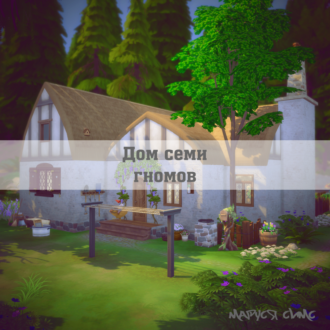 Дом из мультфильма Уолта Диснея "Белоснежка и семь гномов". Сами гномы также в наличии, однако я решила, что семь кроватей - это не рационально, поэтому внутреннюю обстановку сделала на свое усмотрение. У меня дом расположен в Гранит Фолз в качестве жилья для отдыха, вы же можете использовать его в любом другом месте. Но стоить отметить, что в огороде, который имеется на заднем дворе, растут растения только из набора "В поход!" Еще одной особенностью является отсутствие газовой плиты, вместо нее в доме располагается гриль-печь из комплекта "Только с грядки". Есть на участке система пожарной безопасности и аудиосистема, а вот телевизора и компьютера нет. Тип участка - жилой дом Размер участка - 30х20 Этажи - 1 С/у - 1 Спальни - 2 (одна двуспальная и одна односпальная кровати) Стоимость - 59475 симолеонов Без СС При строительстве был применен код bb.moveobjects Требуются все дополнения, каталоги, наборы и комплекты, вышедшие до 23 марта 2026 года. Версия игры 1.122.212.1030 и выше. Ск