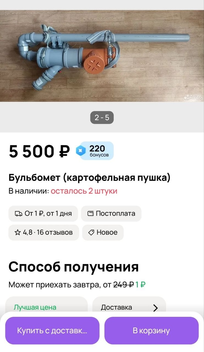 Тем временем на Авито продаётся бульбомёт 🥔💥