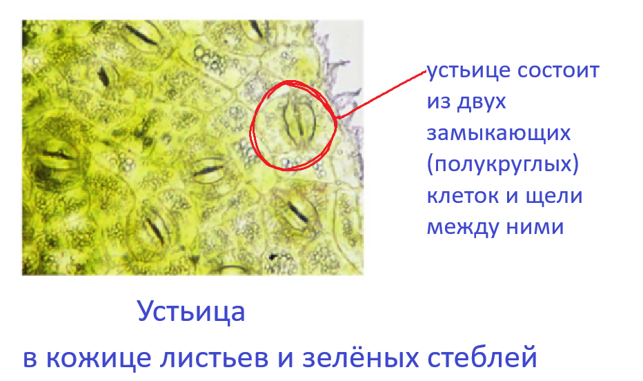 3) замыкающие клетки располагаются в покровной ткани (кожице) листа;