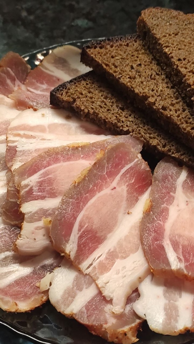 Ингредиенты Грудинка свиная - 1 кг Соль крупная не йодированная - 150 гр Паприка сладкая или острая - 2-3 ч.л. Тмин или кориандр (молотый) - 2 ч.л Перец черный (молотый) - 1 ч.л Чеснок - 4 зубчика Кусочек грудинки сначала хорошо очищаем острым ножом со всех сторон, удаляем косточки и хрящи, затем хорошо промываем под проточной водой, а когда лишняя вода стечет, промокните грудинку бумажным полотенцем. Далее натираем грудинку солью со всех сторон и убираем в ёмкость с крышкой, и в холодильник - на 24 часа. Прошли сутки, соль смыть и промыть грудинку таким способом: налить холодную воду в ёмкость и погрузить грудинку в неё минут на 10 и так проделать раза 2-3. Обсушить грудинку и промокнуть бумажным полотенцем. Теперь приступим к специям, натираем ими грудинку со всех сторон, потом натираем чесноком заворачиваем в бумагу для выпечки и оставляем грудинку в холодильнике на 12 часов. Грудинка готова. Я люблю, когда она подморожена, для этого отправляю её на 12 часов в морозилку. Достаём из