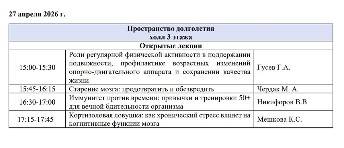Как я уже говорила, в рамках II Всероссийского форума «Технологии долголетия» у нас запланированы открытые лекции для широкой публики