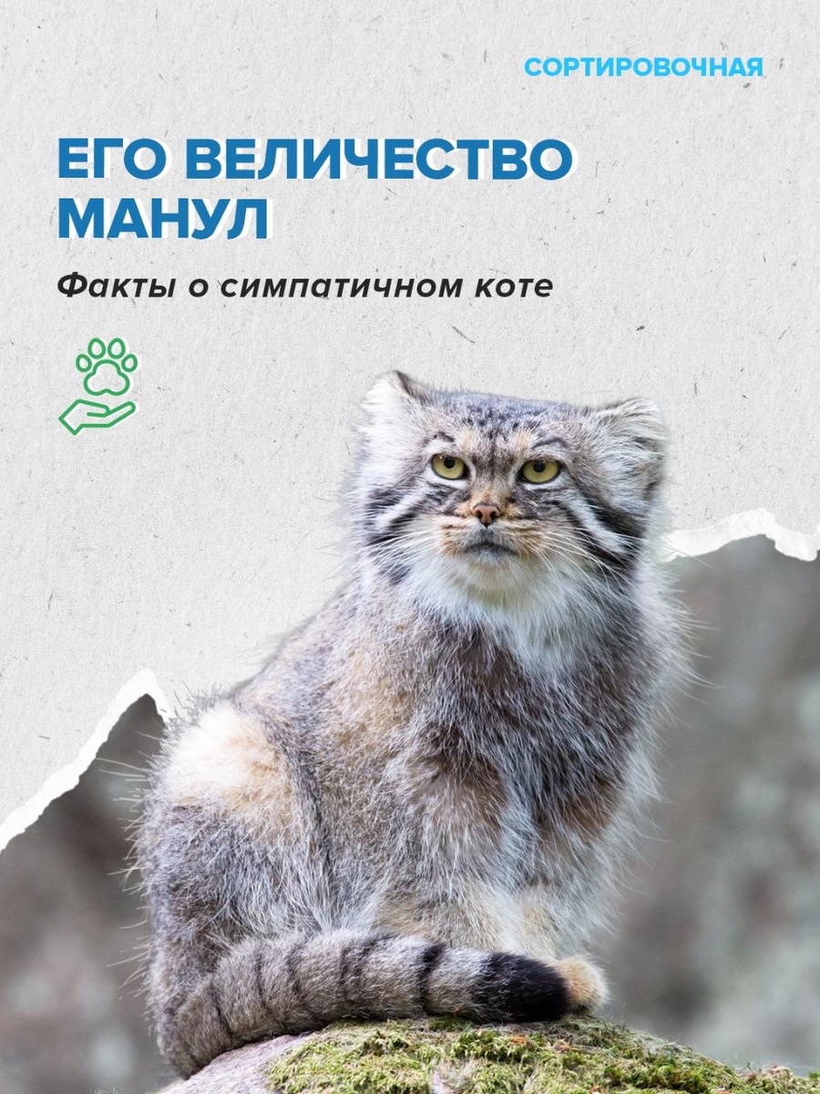 Этот красавчик покоряет сердца людей. При этом котик занесён в Красную книгу России как редкий вид и в Международную Красную книгу как находящийся под угрозой исчезновения. Низкая популяция манула связана с браконьерством, потерей среды обитания и низкой выживаемостью котят. ⬆️ Интересные факты о символе зажировки рассказали в карточках. Подпишись — будь на зелёной стороне | Сортировочная в MAX