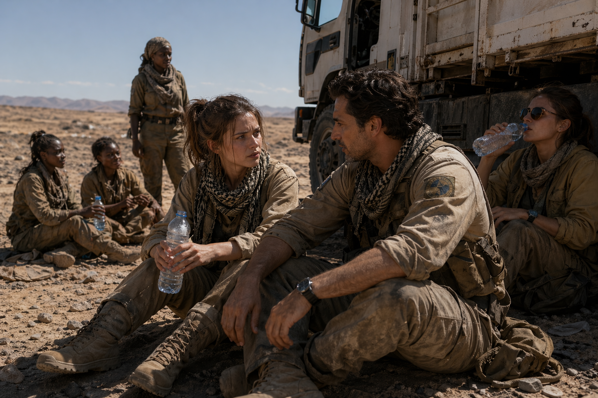 Креспо прекрасно понимал всю важность этого нехитрого, но жизненно необходимого в пустыне средства. Он без лишних возражений и гримас спокойно нанёс плотный слой крема на лицо, чувствуя, как кожа мгновенно впитывает жирную основу, переставая стягиваться от сухого ветра. Затем он, немного повозившись, достал из небольшого походного холодильника пластиковую бутылку воды, покрытую мелким бисером конденсата, открыл её и молча передал Наде:
