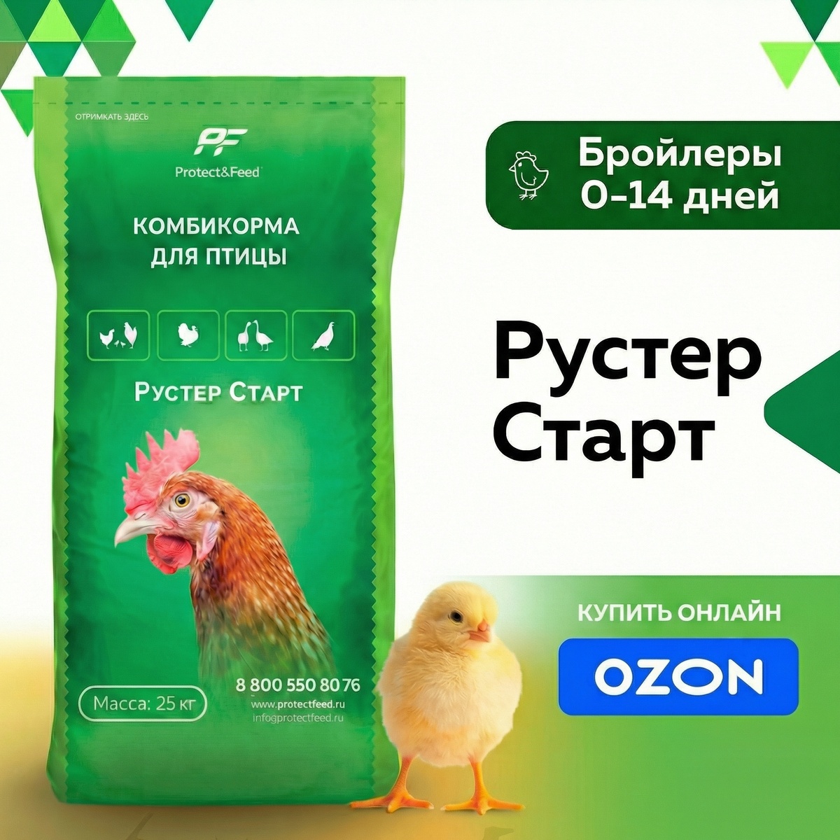 🔹 недобор веса на финише. И чаще всего причина одна - неправильный стартовый рацион. 🔥 Рустер СТАРТ (0–14 дней) от Protect&Feed разработан именно для этого критического периода. Что в нём важно: