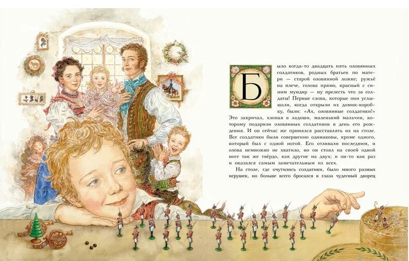 Доступно чудесное издание «Стойкого оловянного солдатика» с иллюстрациями А. Ломаева. Прелесть какая! Культ семьи, любви и светлых пространств. Похоже, это автопортрет семьи художника.