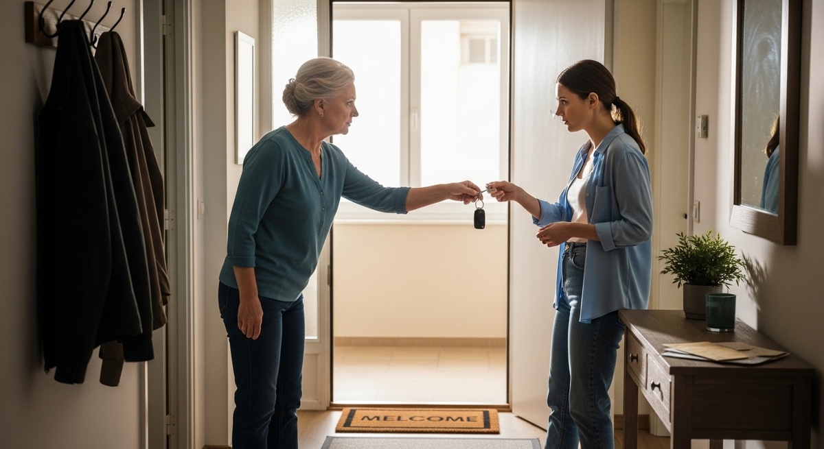 Ключи лежали на комоде у входа — маленькая связка с брелоком в виде сердечка, который Карина подарила мне на день рождения три года назад. Я взяла их привычным жестом, уже накинув куртку, когда из кухни вышла Валентина Степановна.
